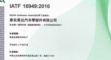 公司擁有IATF16949:2016國際標(biāo)準質(zhì)量管理體系認證,精良的設(shè)備、先進的生產(chǎn)工藝及完善的質(zhì)量檢測保證了公司產(chǎn)品的可靠品質(zhì)...